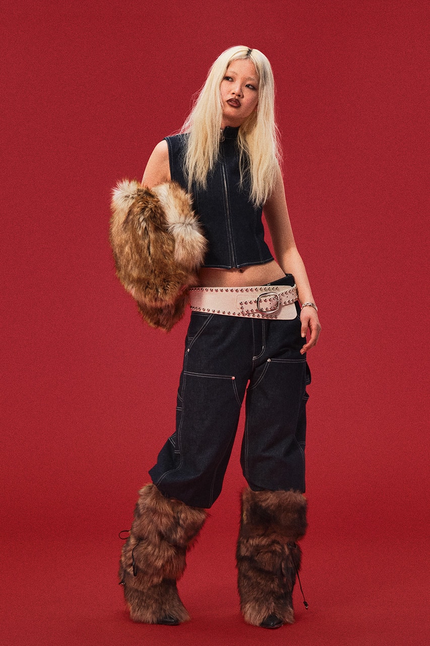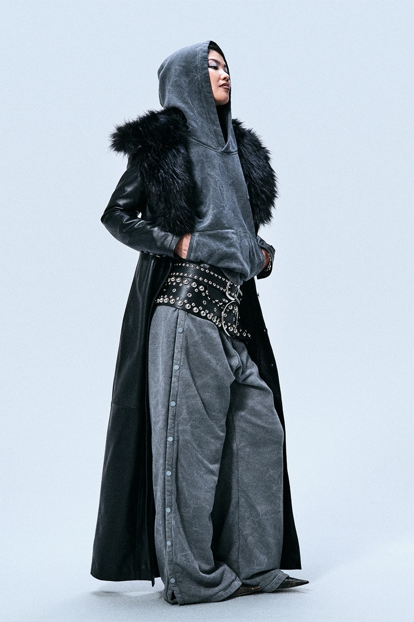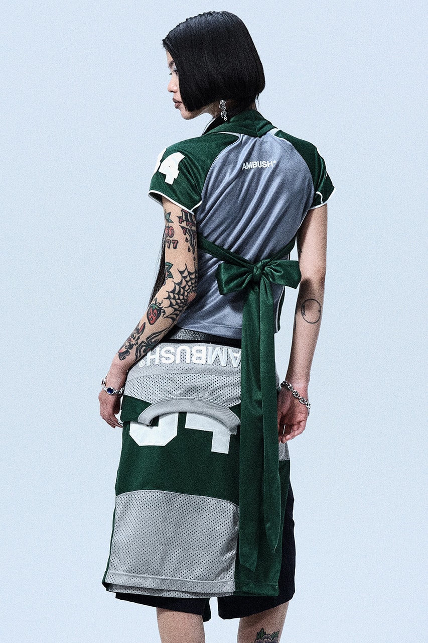 The collection reimagines AMBUSH’s signature styles with bold textures and innovative designs. Think fur-trimmed bombers, studded belts over tracksuit pants, and lace-detailed athleisure. Layered mini skirts, sherpa accents, and oversized cropped hoodies add a playful yet edgy twist.