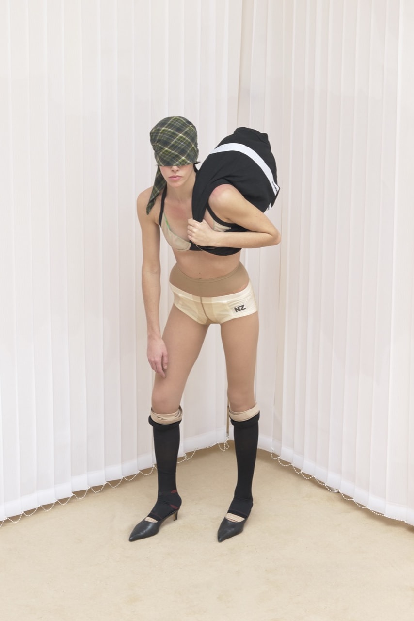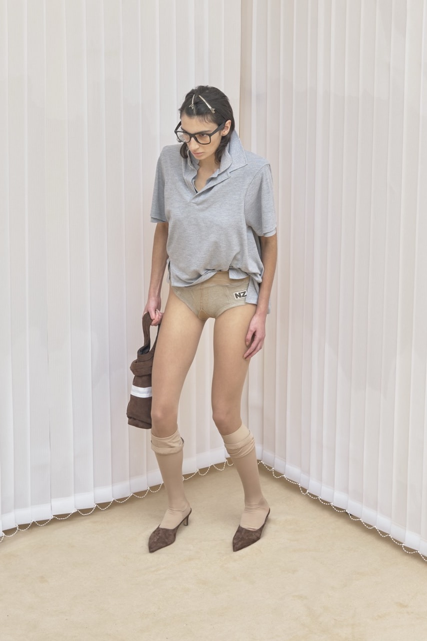 Двошарові поло підкреслюють складність сучасного світу, а розрізані спідниці-олівці та моторошні аксесуари у вигляді бантів додають атмосферності. Фірмові боксерські шорти NZ також повертаються, але в іншому форматі: вони перетворені на сумки-тоут та месенджери, символізуючи заклик до відкритості та чесності у світі, який усе більше розділяється.