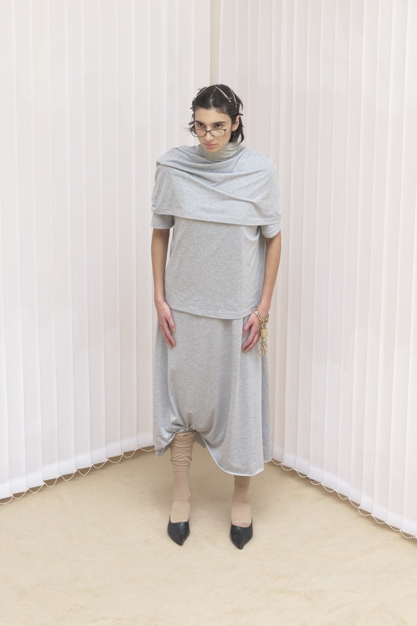 У колекції PF25 переосмислено худі: їх деформовано, доповнено діагональними блискавками та вивернутими силуетами. Ділові піджаки отримали несподівані акценти та поєднані з пом’ятими та плісированими штанами, відображаючи хаотичність нашого часу. Білизна та футболки трансформувалися у багатошарові конструкції, змінюючи уявлення про звичні базові елементи гардероба.