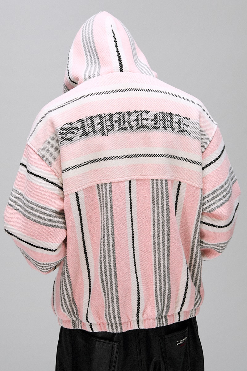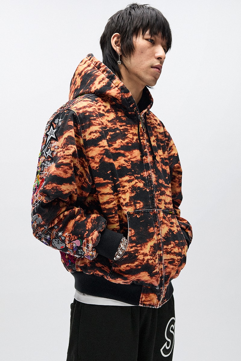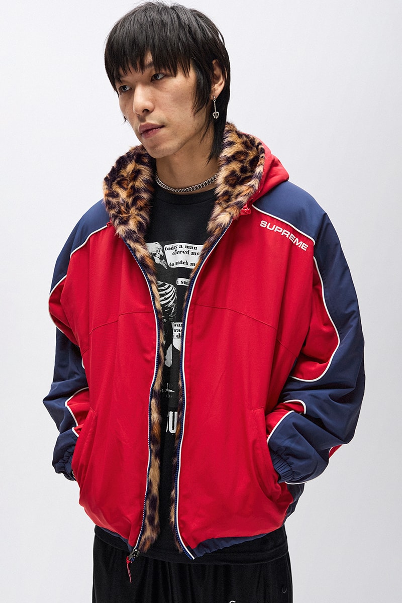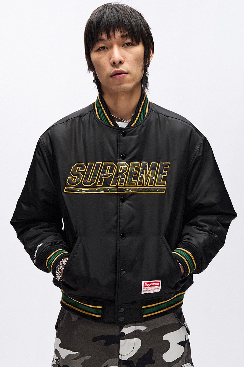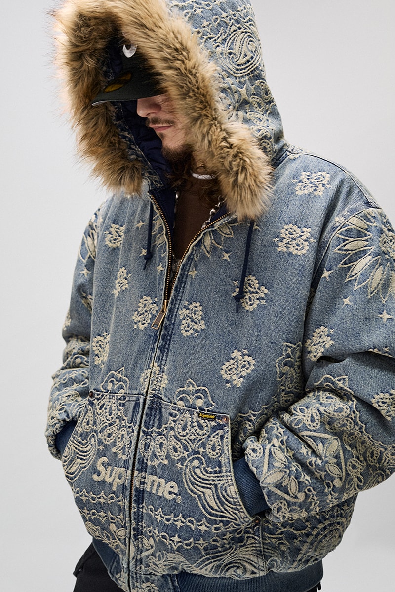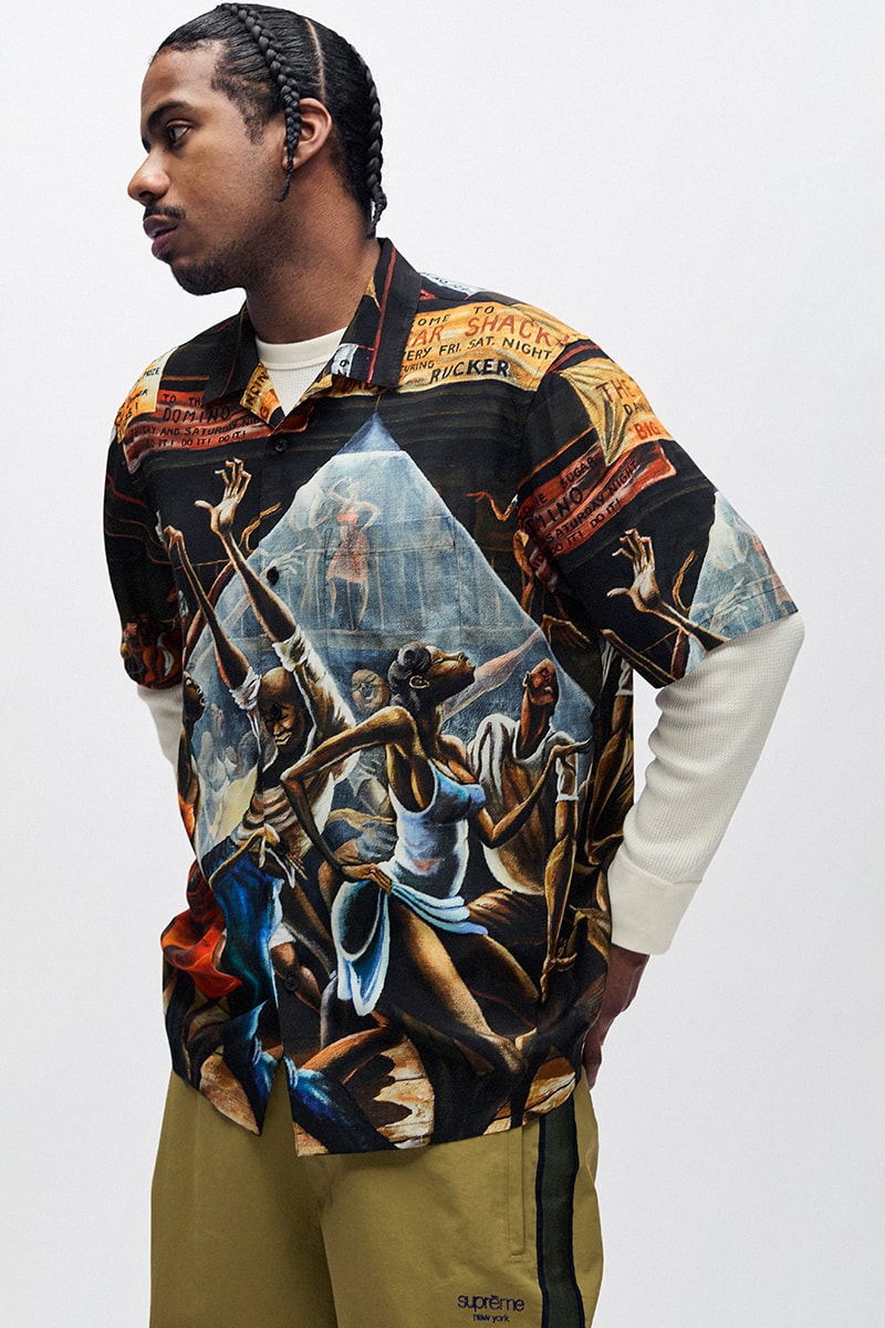 The SS25 lineup includes a diverse selection of jackets, shirts, sweaters, hoodies, tees, pants, shorts, hats, bags, and accessories, incorporating unique materials and standout designs. Highlights include leather and cow-print jackets as well as windbreakers, each reflecting Supreme’s signature bold aesthetic. Art takes center stage in the collection, featuring pieces adorned with Damien Hirst’s iconic works, including The Physical Impossibility of Death in the Mind of Someone Living and The Black Sheep with the Golden Horn. Additional artistic elements come from Ernie Barnes, whose celebrated paintings The Sugar Shack and Main Street Pool Hall appear on select garments. Contributions from AOI, Sean Cliver, and Mario Ayala further enrich the collection’s visual appeal.