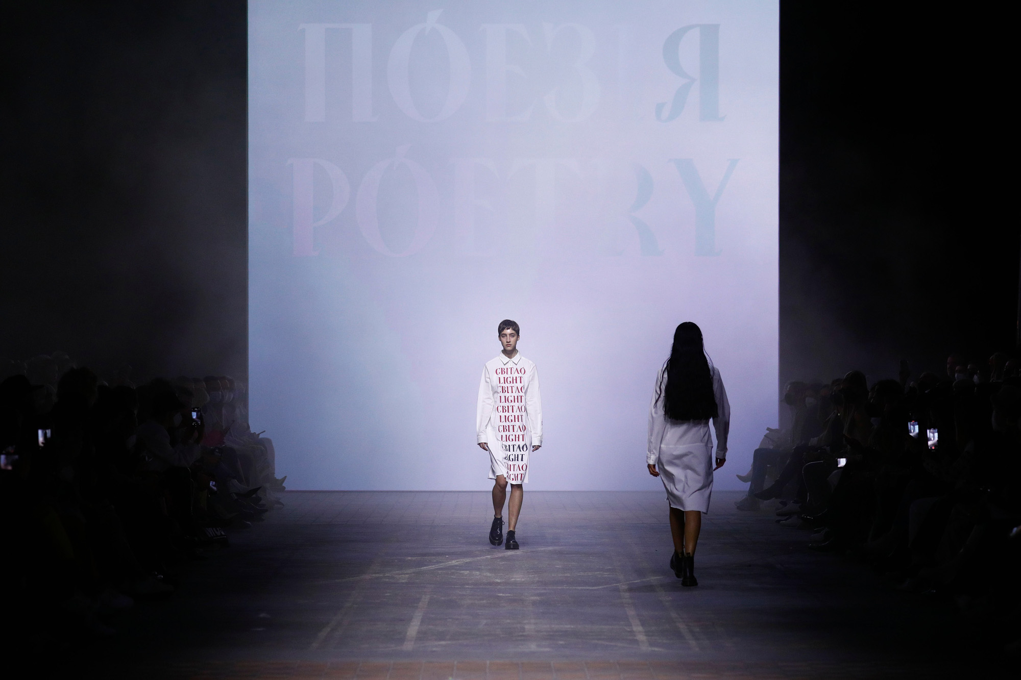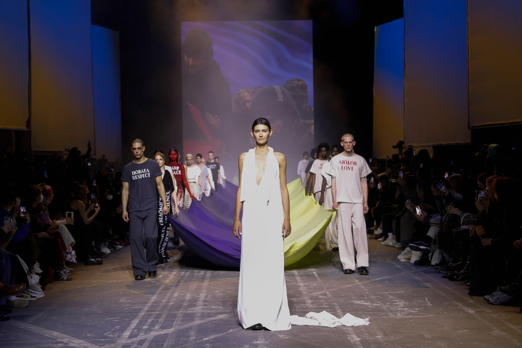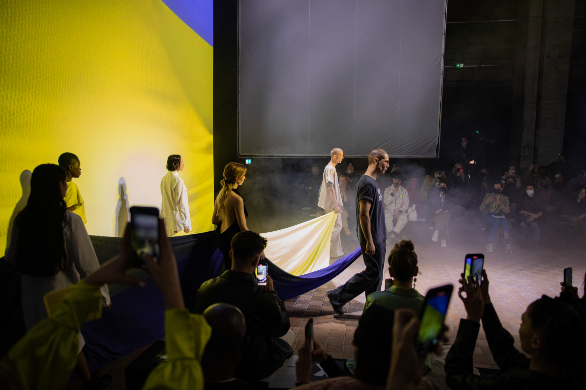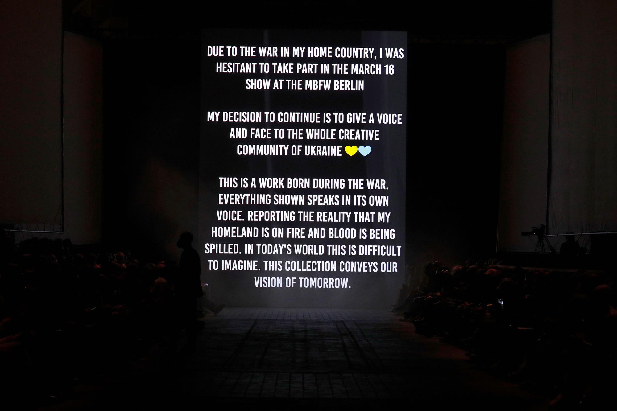 Показ AW 22 колекції українського модельєра Жана Гріцфельдта під час Тижня моди MERCEDES-BENZ (Mercedes-Benz Fashion Week). Через війну в Україні дизайнер був відсутнім під час перофмансу.