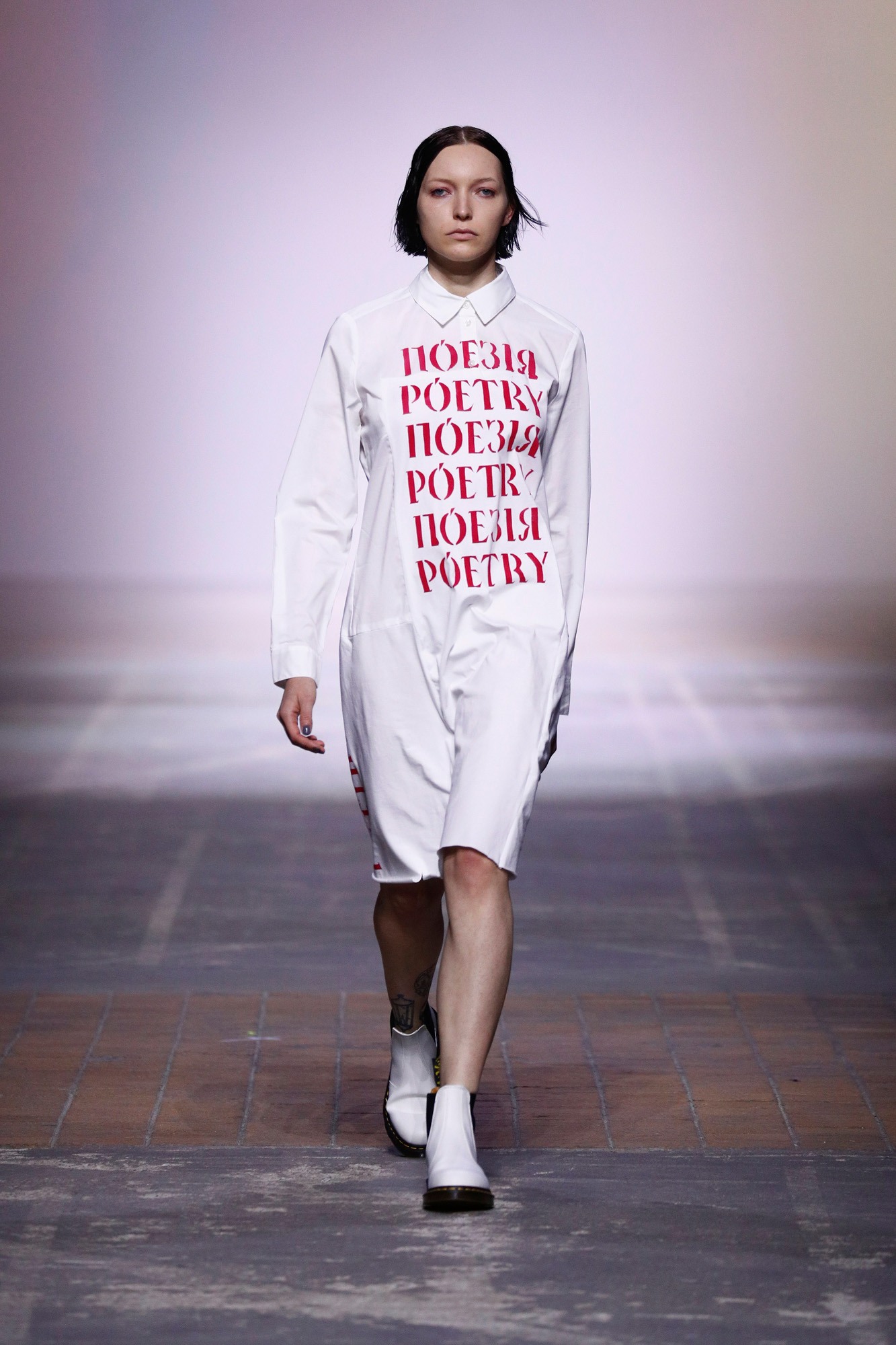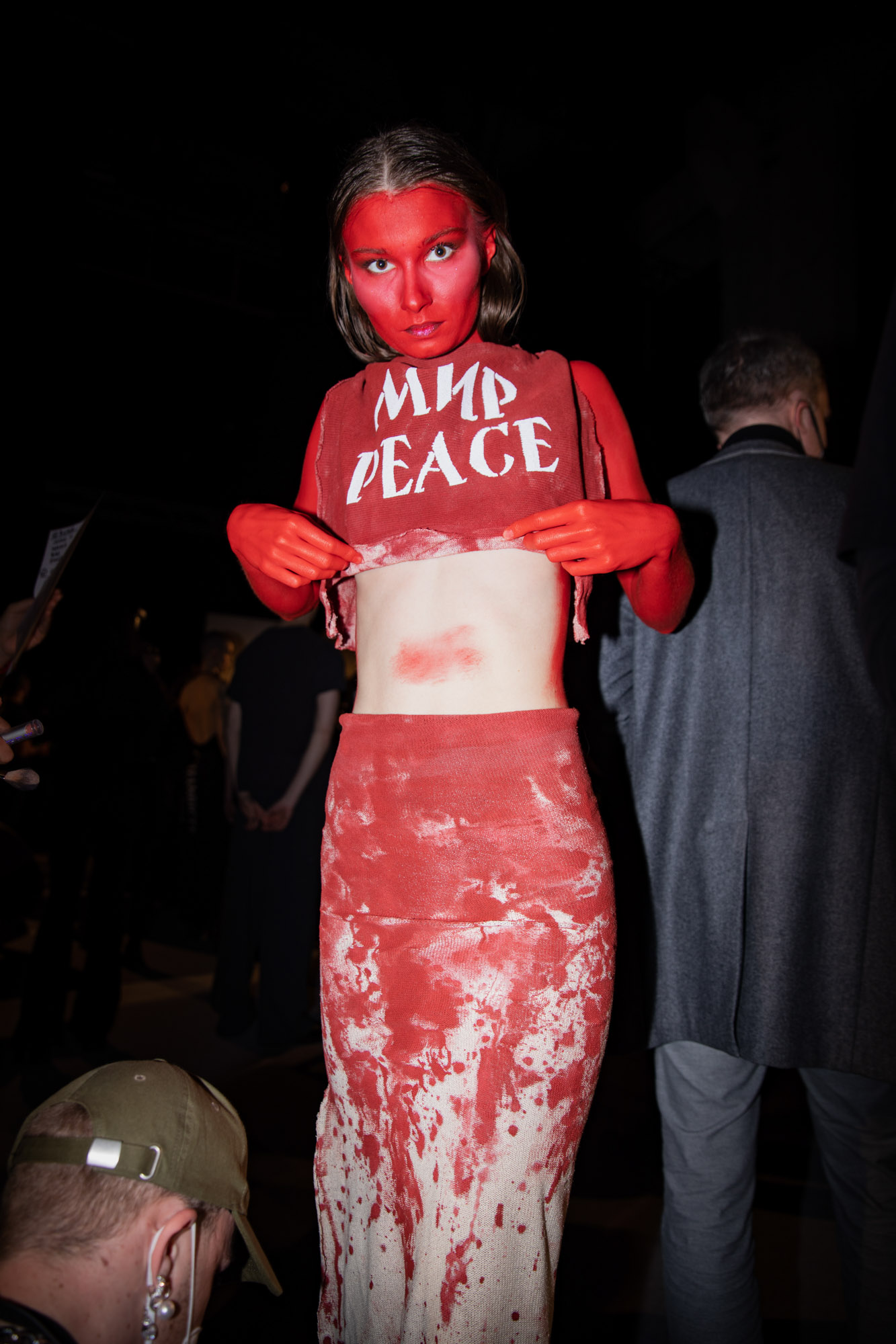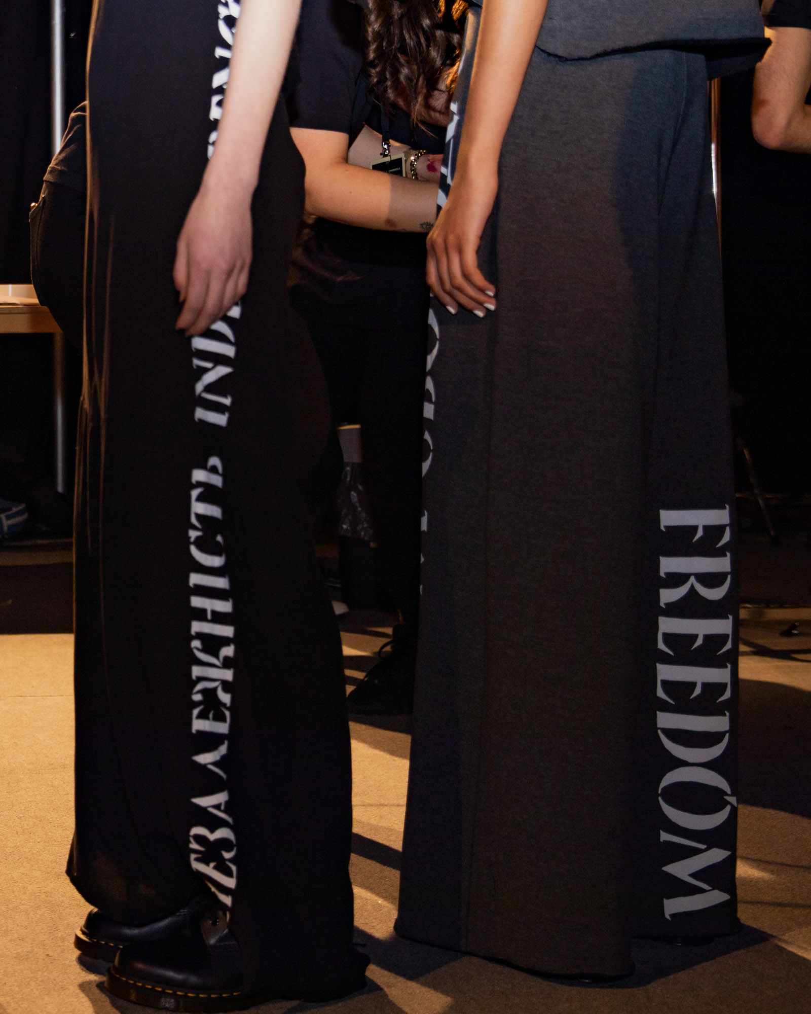 «Сьогодні не час говорити про моду, але час показувати наші реалії через моду. Ми не демонструємо нову колекцію та нові образи, бо коли ховаєшся від бомб в укритті, метро чи підвалах, нікого не хвилює, у що ти вбраний. Головне – що ти живий. Наша колекція – почуття і відчуття. Це наш захист і броня, наша зброя. Те, у що ми вдягнуті, щоб вибороти світ без війни. У нас війна. 3 мільйони біженців. Тисячі зруйнованих будівель і родин. Слова “як ти?” – як ранкове привітання щодня. Живі – слово, яке волієш почути.