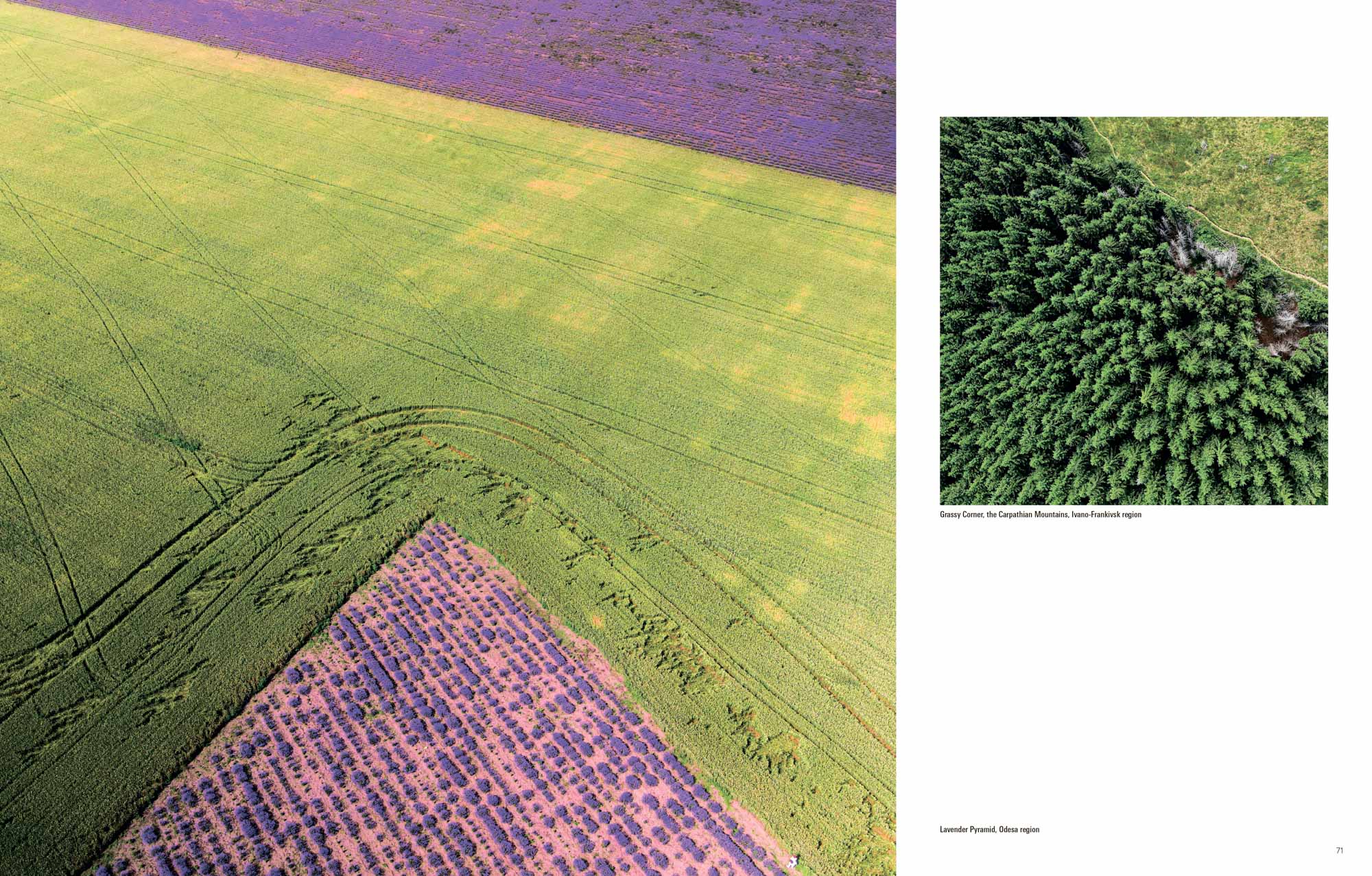 У книзі шість розділів, створених із метою якнайкраще продемонструвати красу української природи й водночас талант Євгена Самученка. Так, у розділі «Унікальні місця» презентуються дійсно фантастичні простори, які заслуговують міжнародного визнання. Одним із найбільших відкриттів стануть солоні рожеві озера, які нагадують витвори талановитих мисткинь і митців. Також видання розповідає про каньйони, які утворилися мільйони років тому, численні національні парки, зображені поряд з окремими природними об’єктами, тощо. У розділі «Патерни природи» відображені симетрія, гармонія та поєднання кольорів у природі. Автори навмисно охопили у книзі також природні об’єкти, сучасні форми яких утворилися, зокрема, через життєдіяльність людей – такі, наприклад, як кар’єри, підкреслюючи цим важливість коректного співіснування людини й довкілля, необхідність обговорення та розв’язання екологічних проблем.