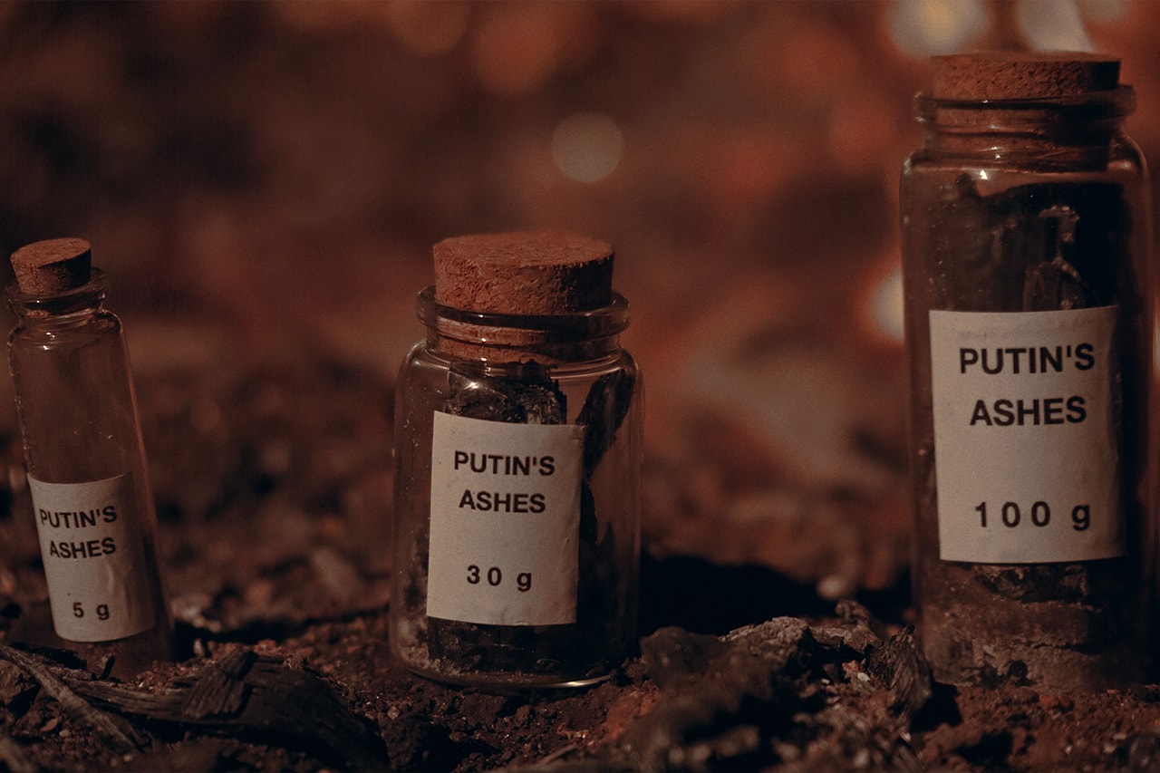 Під керівництвом засновниці колективу Наді Толоконнікової політичний перформанс вперше дебютував у серпні 2022 року. Перформанс зображував портрет президента росії розміром 10 на 10, який спалювали разом із «виконанням ритуалів і заклинань, спрямованих на те, щоб прогнати путіна». Потім Толоконнікова зібрала залишки попелу з портрета «і включила їх у свої об’єкти, які демонструються разом із її короткометражним художнім фільмом «Попіл путіна», зрежисерованим, змонтованим і написаним нею.