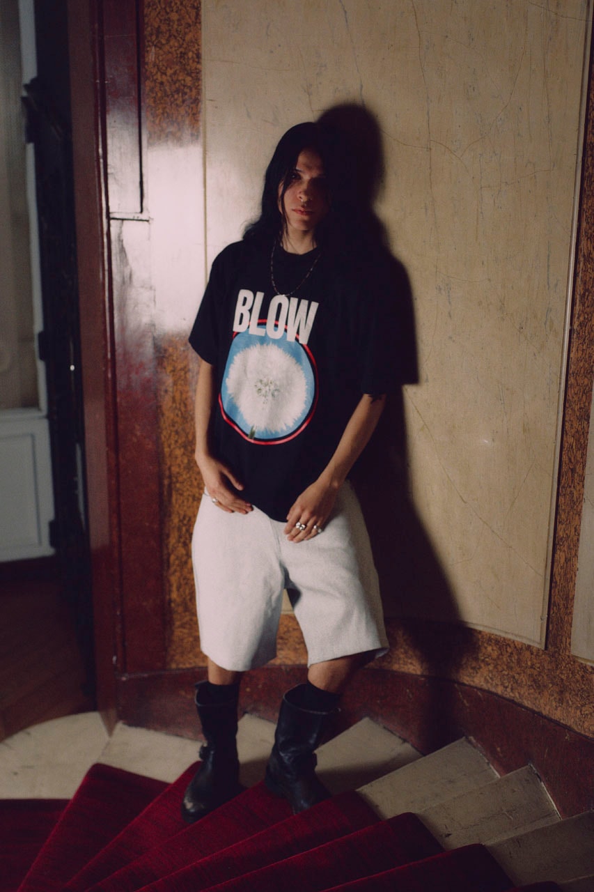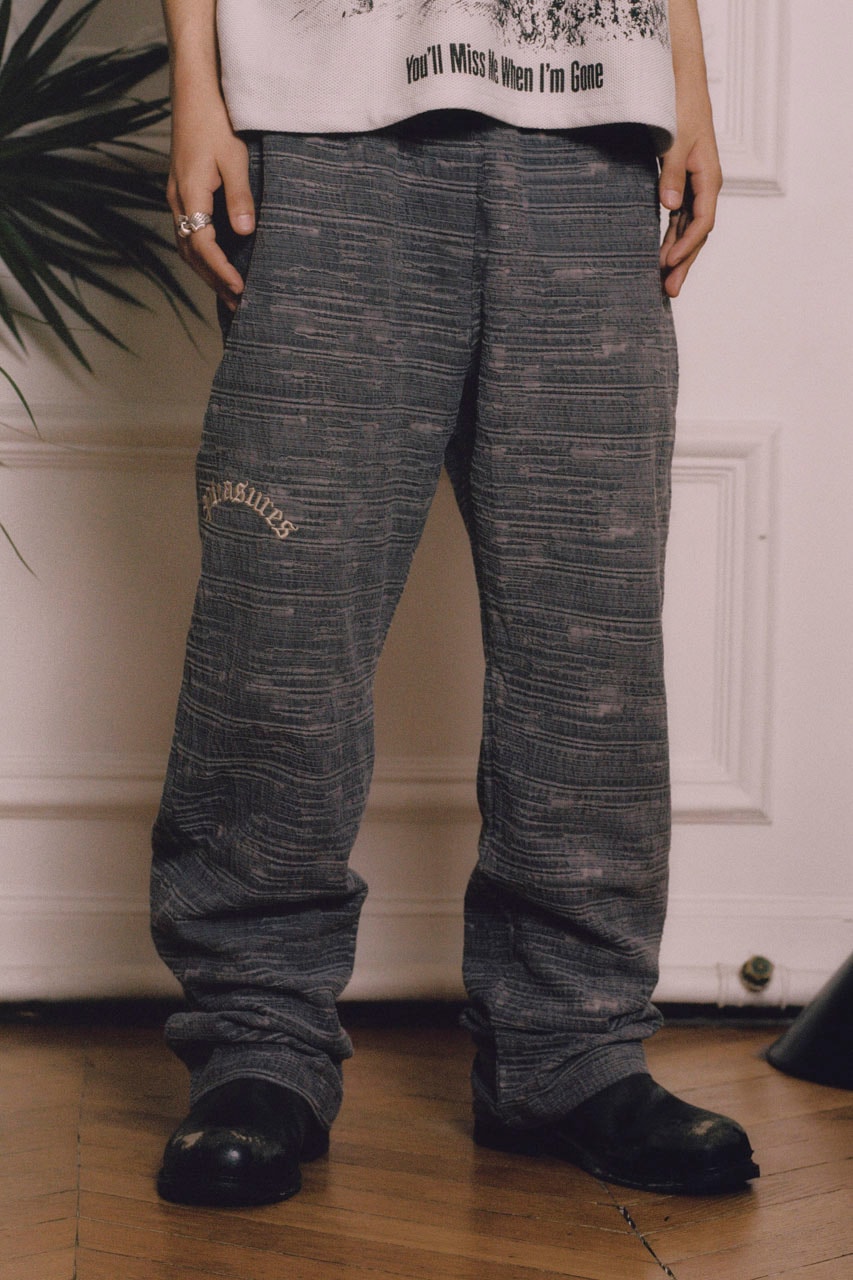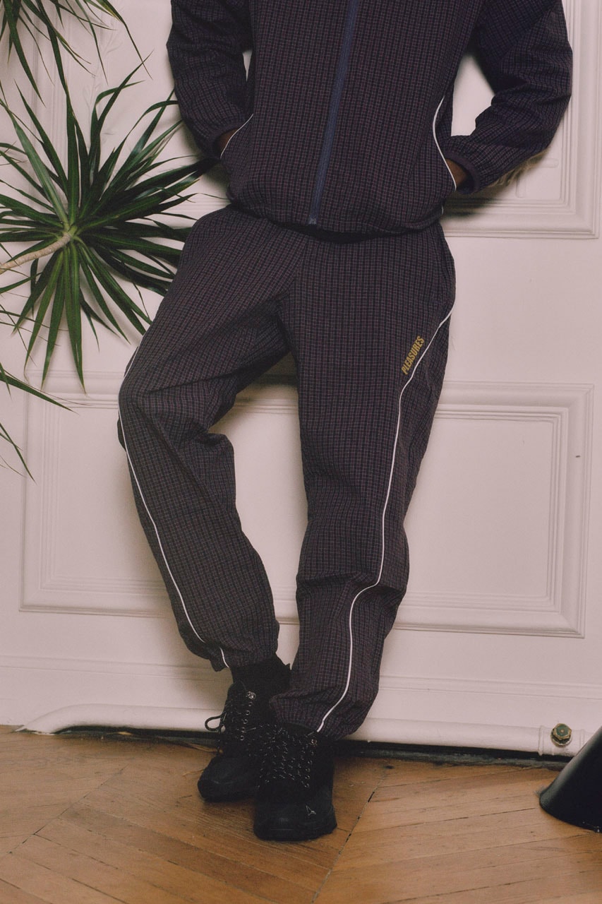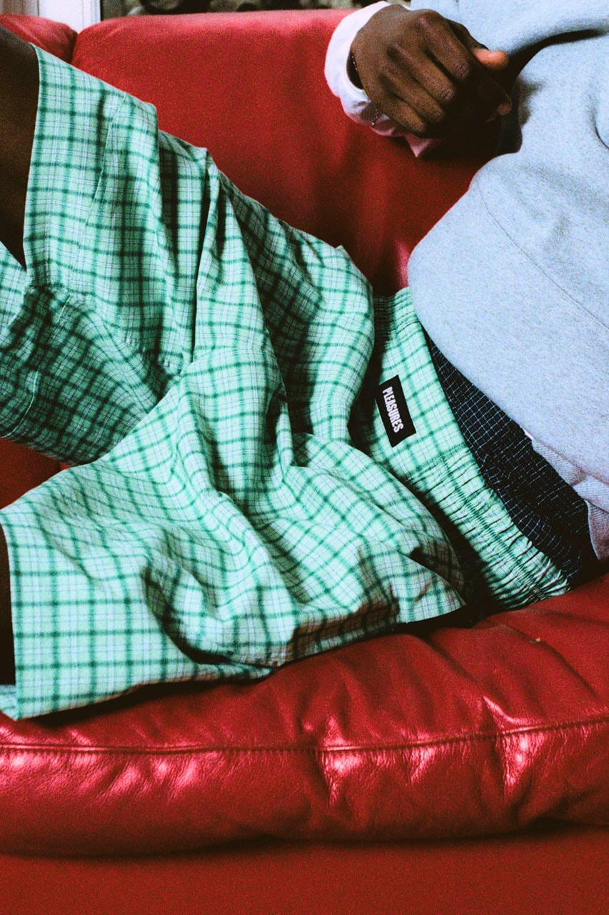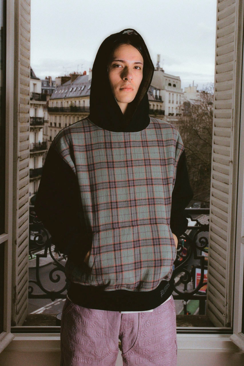 Принти домінують у всій колекції: смугаста сорочка з оксфордської тканини з градієнтом блакитного та рожевого кольорів, джинси, вкриті логотипами PLEASURES. Серед аксесуарів — сонцезахисні окуляри та друковані парасольки.