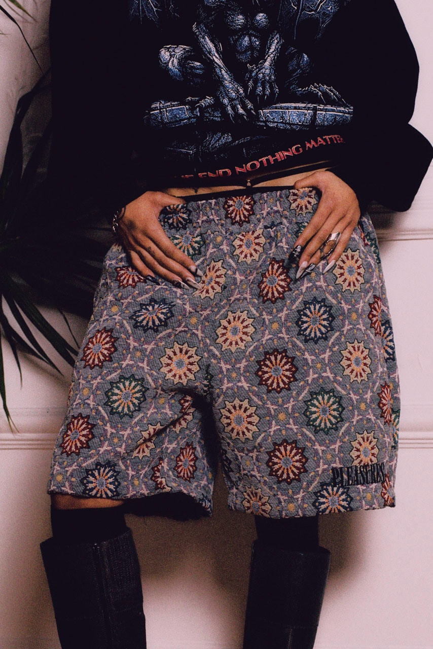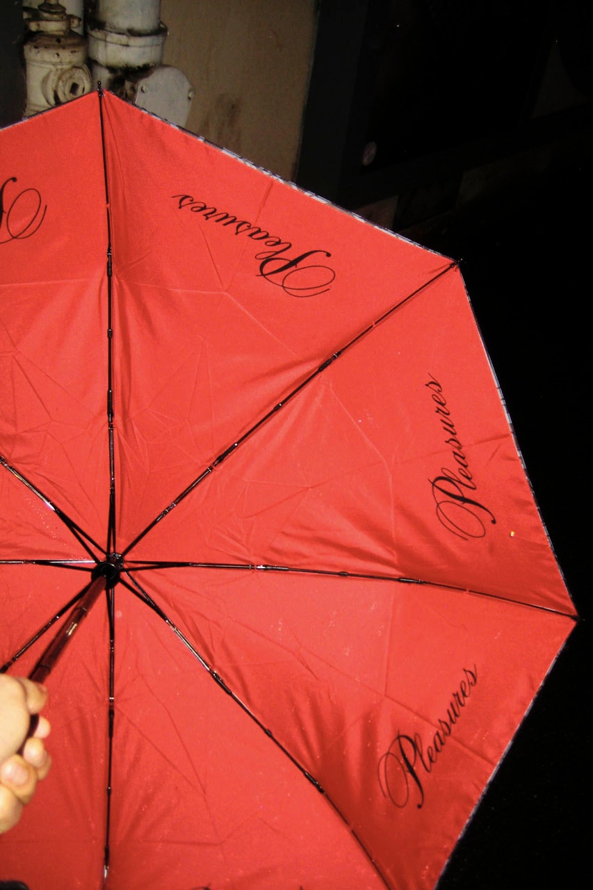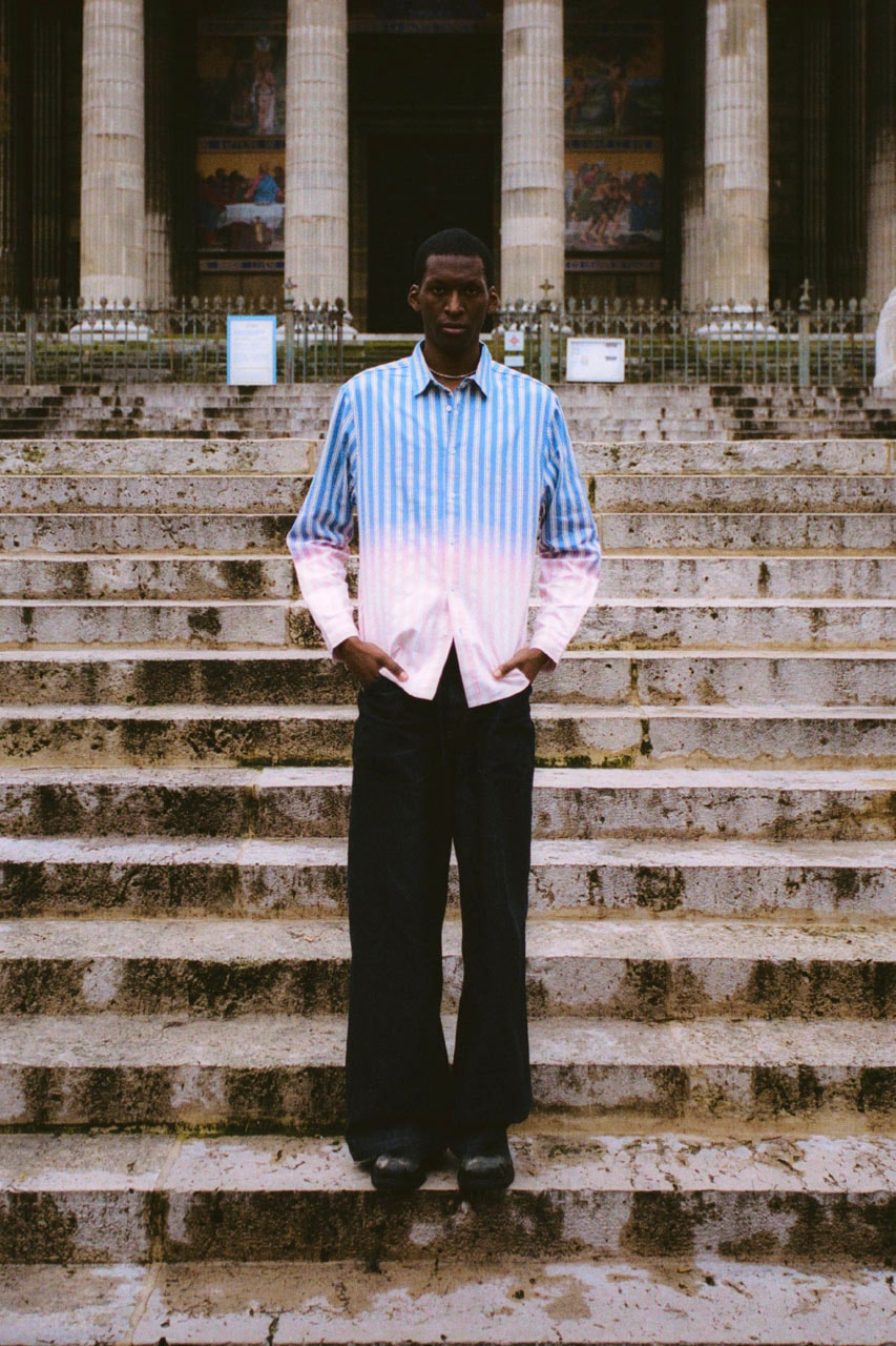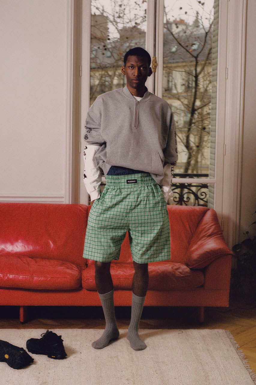 Принти домінують у всій колекції: смугаста сорочка з оксфордської тканини з градієнтом блакитного та рожевого кольорів, джинси, вкриті логотипами PLEASURES. Серед аксесуарів — сонцезахисні окуляри та друковані парасольки.