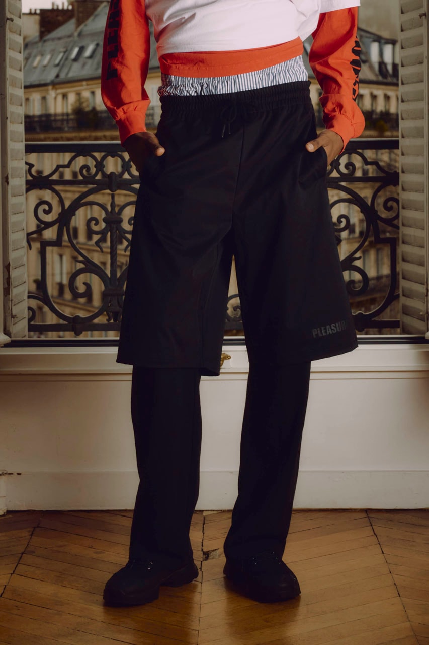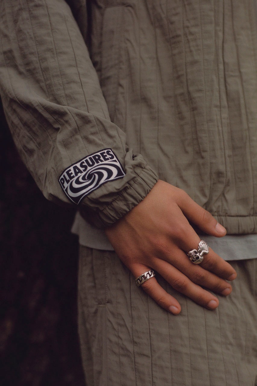 У колекції PLEASURES співпрацює з Realtree, щоб створити верхній одяг, включаючи важкий водонепроникний куртку з камуфляжним принтом. Серед інших помітних моделей — джинсова робоча куртка з білою підкладкою та контрастною строчкою, чорна флісова толстовка на блискавці, нейлонові костюми з чверть-блискавкою та голографічною підкладкою, а також реверсібні бомбери.